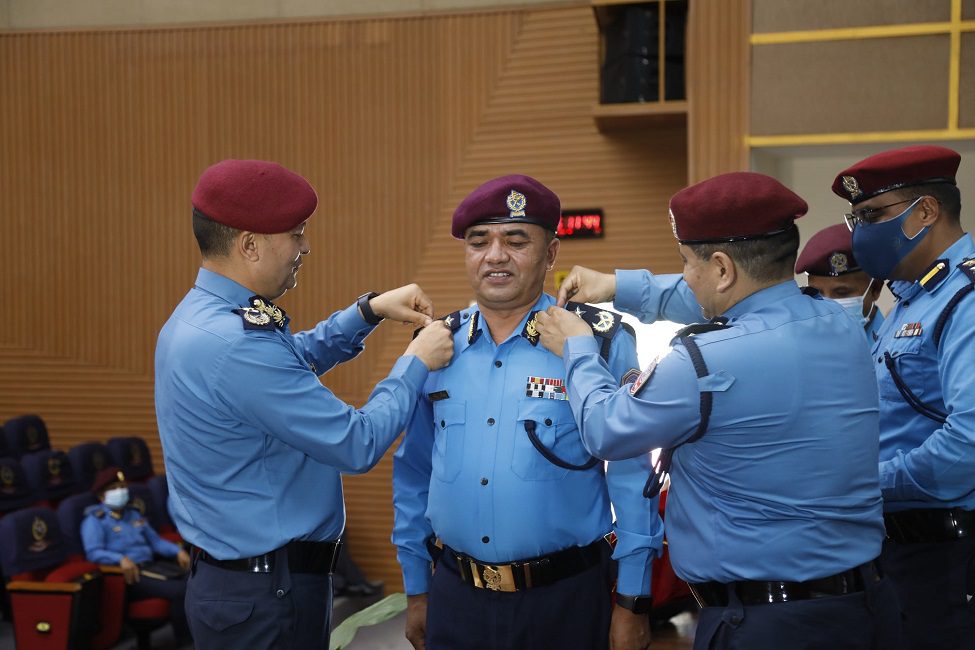 काठमाडौं । प्रहरी नायव महानिरीक्षकबाट प्रहरी अतिरिक्त महानिरीक्षक पदमा पदोन्नति हुनु भएका सहकुल बहादुर थापाले आइतबार दज्र्यानी चिन्ह लगाएका छन् । प्रहरी महानिरीक्षक शैलेश थापा