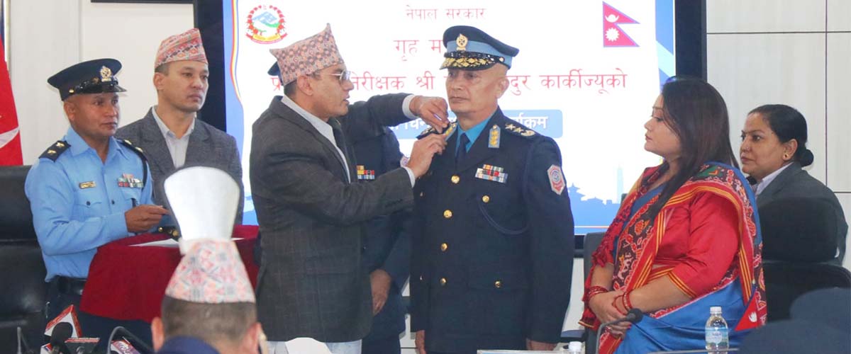 काठमाडौं । नवनियुक्त आईजीपी दानबहादुर कार्कीलाई दज्र्यानी चिह्न प्रदान गरिएको छ । बिहीबार गृह मन्त्रालयमा आयोजित विशेष समारोहका बिच कार्कीलाई गृहसचिव रामेश्वर दंगालले दज्र्यानी चिह्न