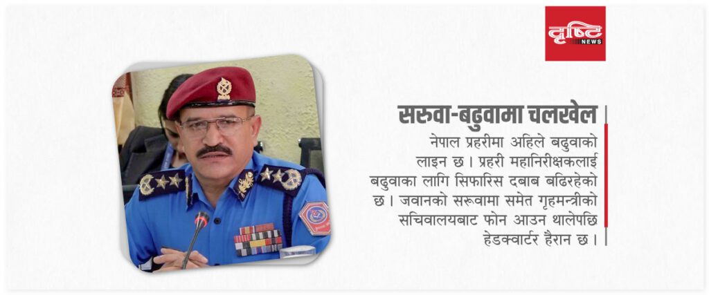 काठमाडौं । सशस्त्र प्रहरीले राजनीतिक दलका नेता तथा कार्यकर्ताहरुसँग भेटघाटमा रोक लगाएपछि नेपाल प्रहरीले पनि मातहत कर्मचारीहरुलाई पूर्व स्वीकृतिबिना भेटघाटमा रोक लगाएको छ । आफूभन्दा
