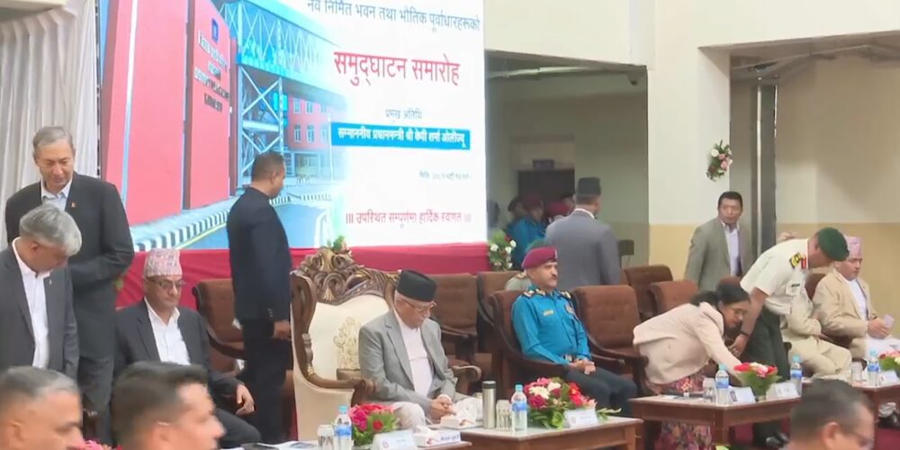 काठमाडौं । प्रधानमन्त्री केपी शर्मा ओलीले जिल्ला प्रहरी परिसर, काठमाडौंको नयाँ भवन उद्घाटन गरेका छन् । आज आयोजित एक समारोहमा प्रधानमन्त्री ओलीले भद्रकालीमा निर्माण भएको