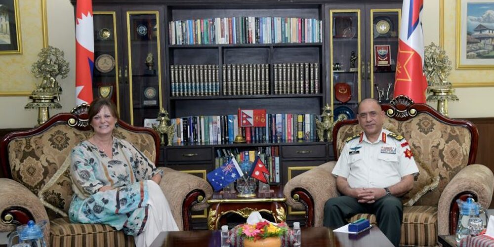 काठमाडौं । प्रधानसेनापति प्रभुराम शर्मा र नेपालका लागि अष्ट्रेलियाका राजदूत फेलिसिटी भोल्कबीच शिष्टाचार भेट भएको छ । राजदूत फेलिसिटीले सैनिक मुखयालय जंगी अड्डा पुगेर प्रधानसेनापति