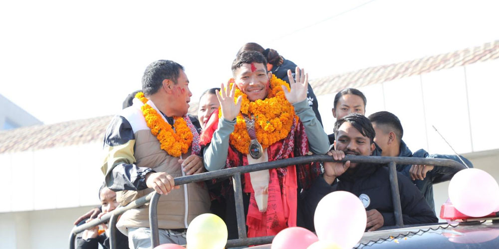 काठमाडौँ । युएईमा भएको आईबा पुरुष विश्व बक्सिङ च्याम्पियनसिपमा ऐतिहासिक कास्य पदक प्राप्त गरेका चन्द्रबहादुर थापासहितको टोलीलाई आज भव्य स्वागत गरिएको छ । युवा तथा