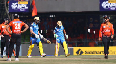 काठमाडौं । कर्णाली याक्ससँगको खेलमा चितवन राइनोज विजयी भएको छ । सिद्धार्थ बैङ्क नेपाल प्रिमियर लिग (एनपीएल)को मंगलबार भएको खेलमा चितवन चार विकेटले विजयी भएको