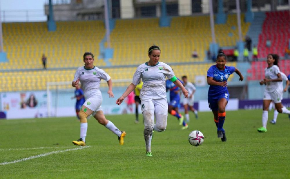 काठमाडौँ । राजधानीमा जारी छैटौँ संस्करणको महिला साफ च्याम्पियनसिप फुटबल प्रतियोगितामा पाकिस्तानले पहिलो जित दर्ता गराएको छ । त्रिपुरेश्वरस्थित दशरथ रङ्गशालामा आज भएको पहिलो खेलमा