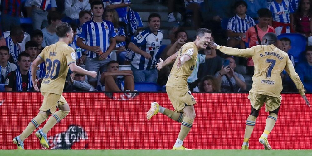 एजेन्सी । स्पेनिस ला लिगामा गएराति बार्सिलोनाले रियल सोसिडाडमाथि ४–१ को जित निकालेको छ । स्टेडियो एनोएटामा सम्पन्न खेलको पहिलो मिनेटमै रोबर्ट लेवान्डीस्कीले बार्साका लागि