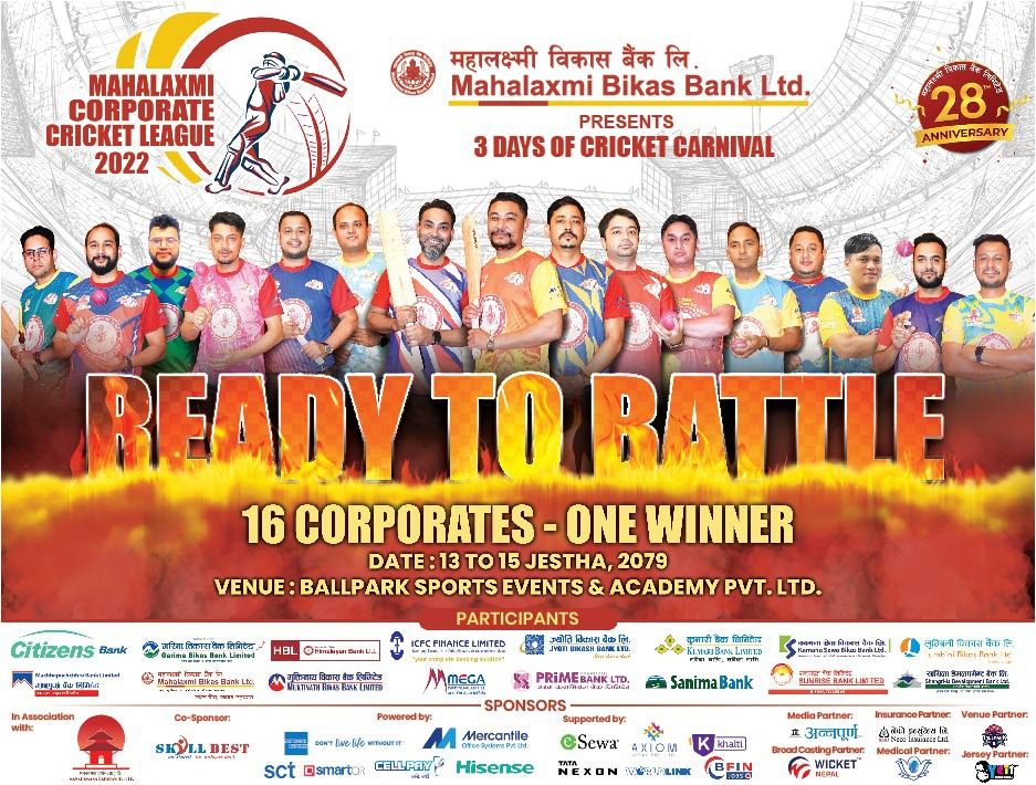 काठमाडौं । महालक्ष्मी विकास बैंक लिमिटेडको आयोजनामा ‘महालक्ष्मी कर्पोरेट क्रिकेट लिग’ आयोजना हुने भएको छ । जेठलाई वार्षिकोत्सव महिनाको रुपमा मनाउन लागेको यस बैंकले आफ्नो
