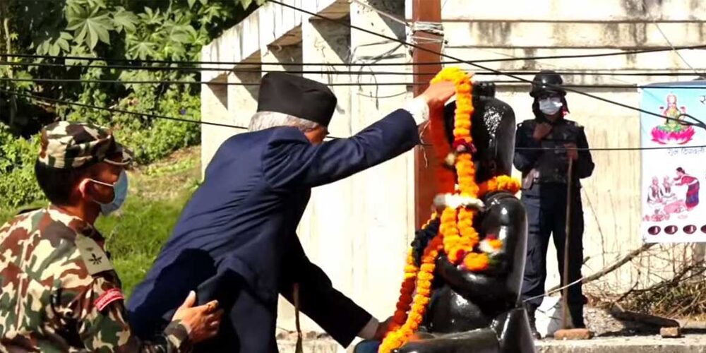 काठमाडौं । प्रधानमन्त्री शेर बहादुर देउवाले राष्ट्रिय विभूति शंखधर साख्वाको शालिकमा माल्यार्पण गरेका छन् । नेपाल संवत् ११४३ को अवसरमा भक्तपुर ठिमिमा बुधबार आयोजित कार्यक्रममा