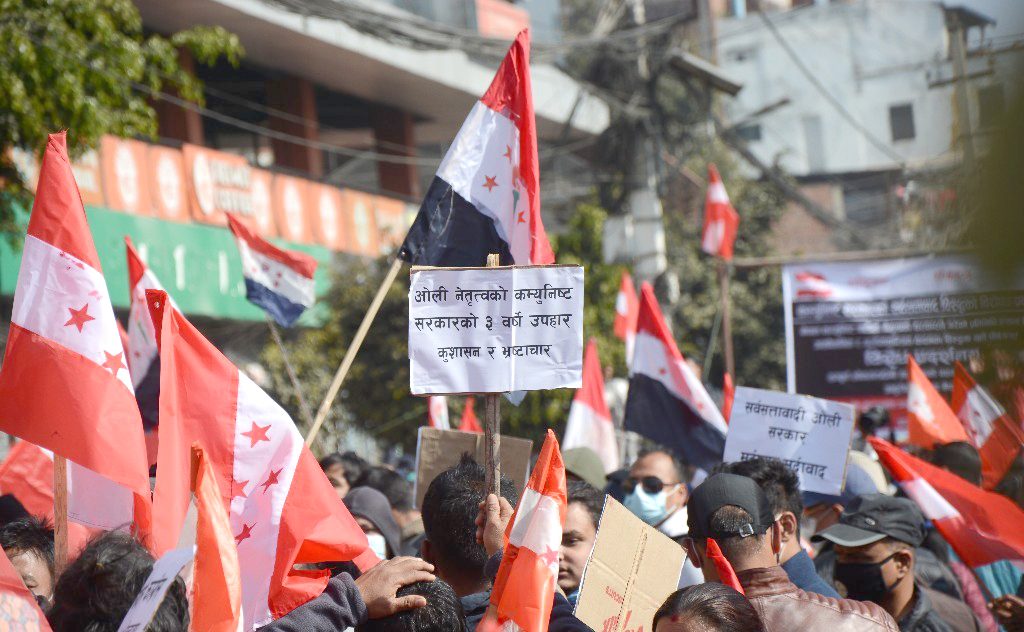 काठमाडौं, १४ पुस । संसद विघटनका विरुद्ध देशव्यापी आन्दोलन चर्किएको छ । प्रधानमन्त्री केपी शर्मा ओलीको असंवैधासनक कदमविरुद्ध प्रमुख प्रतिपक्षी नेपाली कांग्रेस, जनता समाजवादी पार्टीलगायतले
