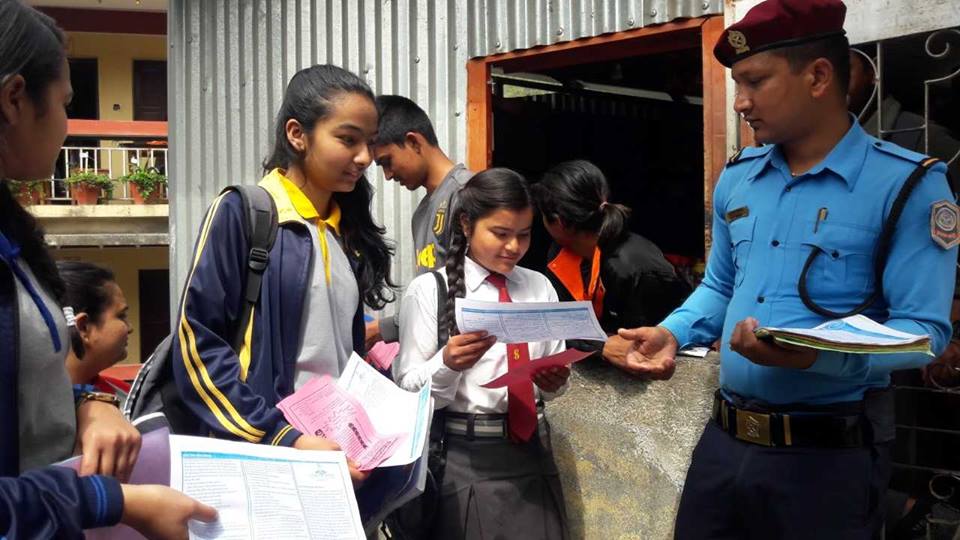 झापा, १९ चैत । यो वर्षको एसईई परिक्षा सोमबार सकिएको छ । परिक्षा सकेर बिद्यालयबाट खुशी हुँदै निस्कैद गरको बिद्यार्थीलाई गेटमा रहेका प्रहरीले शुभकामना दिदै